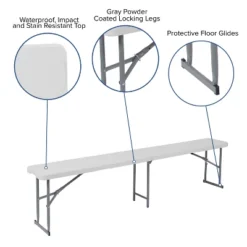 Flash Furniture 10.25”W X 71”L Bi-Fold Granite White Plastic Bench With Carrying Handle