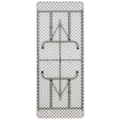 Need an extra table in the house to work on your art projects, candle making classes or to store your supplies on that can double as a dining room table for extra guests? This 6′ long banquet folding table accommodates up to 8 people and adjusts to meet different seat heights to become a great fit in your home for everyday or temporary use. Built for commercial use this heavy-duty folding table makes appearances in restaurants, warehouses, schools, churches and rec centers. Folding tables can be used for all your sit-down activities and their legs lock when folded to be stored away afterward. This versatile folding table can be dressed up during holiday events, parties and special activities. Place multiple tables side by side or in rows to accommodate large party events. If you have hard flooring at your banquet hall or home the floor caps will prevent scratches and allow the table to glide smoothly. Easy to clean and store, plastic folding tables are the best and most popular option for any occasion. Although designed for indoor events this party table can be used outdoors on the deck or patio during good weather. Store the table indoors and protect the frame from extreme moisture. Get your ready to use rectangular folding table for your home or business today. Additional Features: Frame adjusts 7.875″ to accommodate various seat heights, Gray Powder Coated Locking Legs with protective floor caps