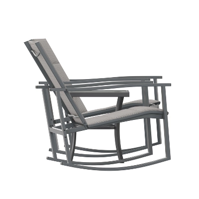 Spend some quality leisure time outdoors with this 3 piece all-weather rocking chair and table patio set. Boasting quick dry textilene flex comfort material, these rockers are perfect for poolside, patios and decks. Integrated armrests and smooth motion curved runners allow for total relaxation. The included glass topped side table not only looks great but also provides much needed horizontal real estate for drinks, cell phones, or snack plates. Powder coated steel frames are weather and rust resistant and allow the chairs to hold up to 300 lbs. static weight and the table to hold up to 50 lbs. static weight. Fixed floor glides on the table will prevent damage to your indoor flooring surfaces. Your new lounge set assembles in 30 minutes or less and wipes clean with a damp cloth making it ideal for busy households. This chair and table set is available in multiple colors to suit your personal taste.