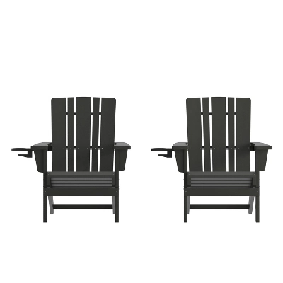 - Set of 2 Contemporary Commercial Adirondack Patio Chairs with Cupholders