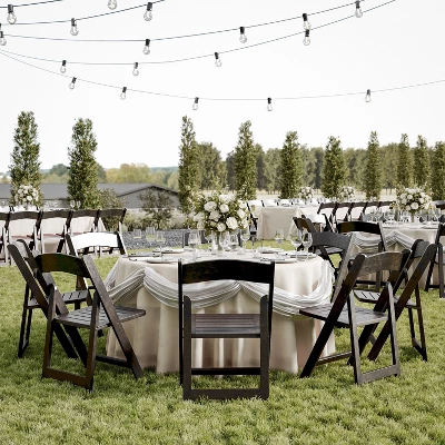 Dazzle your friends and family during your next dinner party or deliver a warm, inviting presentation to your business with this set of four wood folding chairs that combines sophistication with functionality, enhancing any room or event space. The perfect fit for your kitchen or dining room at home, these chairs are also rated for commercial use, so you can rely on their versatile design to bring style and comfort to your restaurant, bar, bistro, lounge, coffee shop, café, deli, or event space. Crafted from solid beechwood with a robust mortise and tenon construction, these chairs are built for durability and stability. The curved backs provide comfort for extended periods to keep your guests relaxed and engaged during weddings, conferences, or luncheons. An easily foldable design allows for simple, space-saving storage and welcome portability to move and transport your chairs hassle-free. Each chair boasts a static weight capacity of 300 lbs., accommodating a variety of users while maintaining structural integrity. Plus, fixed floor glides are designed to protect your hard flooring surfaces from damage, enabling you to freely and confidently move your chairs around your space. No assembly is required, saving you from the need to waste time and energy on a tedious setup process. Clean up is a breeze – Simply wipe with a damp cloth to keep them looking pristine. Whether you’re furnishing a cozy home dining area or an elegant commercial venue, this set of four folding chairs is an excellent choice for style and convenience.