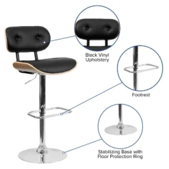 Flash Furniture Bentwood Adjustable Height Barstool With Curved Vinyl Seat And Back