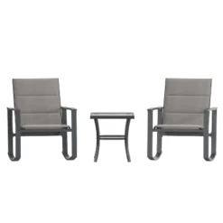 Flash Furniture Commercial Grade 23.75″ Square Metal Indoor-Outdoor Table Set With 2 Arm Chairs