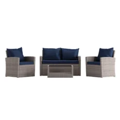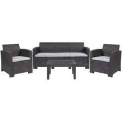 Flash Furniture 4 Piece Outdoor Faux Rattan Chair, Sofa And Table Set