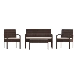 Flash Furniture 4 Piece Outdoor Faux Rattan Chair, Sofa And Table Set In Chocolate Brown