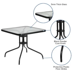 Flash Furniture All-Weather Resin Top Square Table & 4 Metal Chairs With Poly Resin Seats-Black