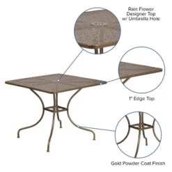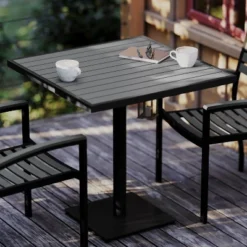 Flash Furniture Outdoor Patio Bistro Dining Table With Faux Teak Poly Slats, 30″ Square