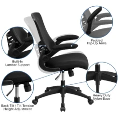 Flash Furniture Wayne Mid-Back Black Fabric Swivel Task Office Chair With Adjustable Arms
